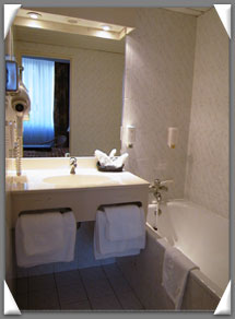 Well arranged bathrooms with hairdryer and international plugs. |  |